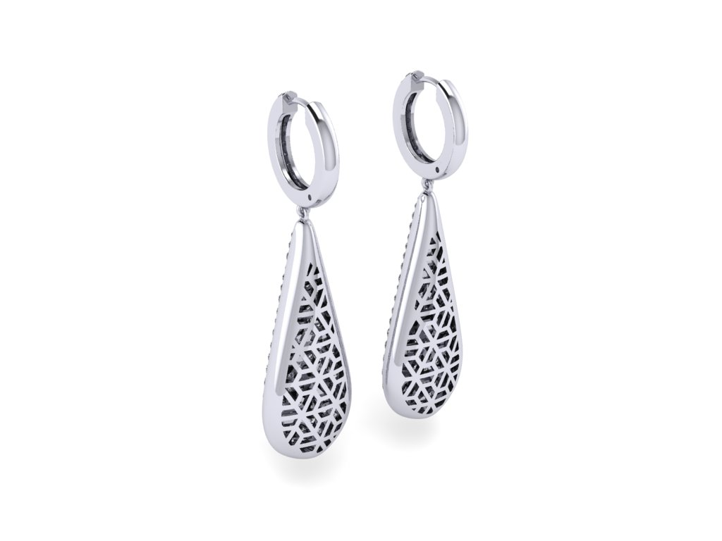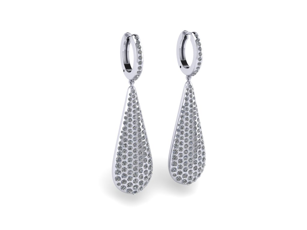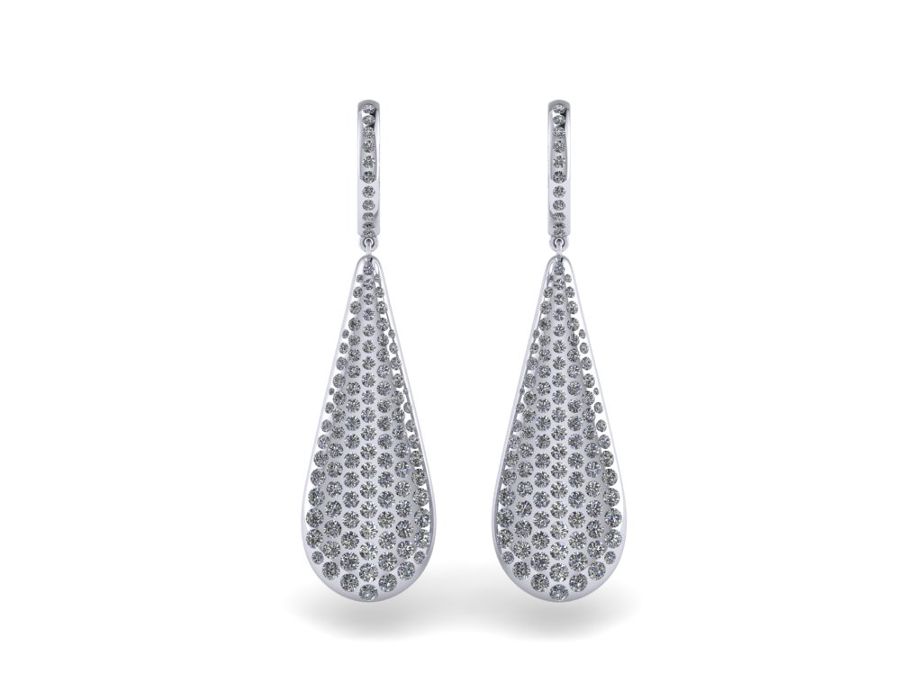 The Drop Earrings by ADCO Diamond feature a refined hoop top accented with pavé-set diamonds, leading into a softly contoured teardrop silhouette fully adorned with brilliant stones. The seamless transition between the hoop and drop creates a fluid, elongated form that enhances movement and catches light from every angle. Crafted in a polished white metal finish, the design balances delicate detailing with a bold surface of continuous sparkle. The back reveals an open lattice structure, allowing light to pass through and elevate the overall brilliance while keeping the piece lightweight. Elegant yet striking, these earrings are designed to bring effortless radiance to both everyday wear and special occasions.