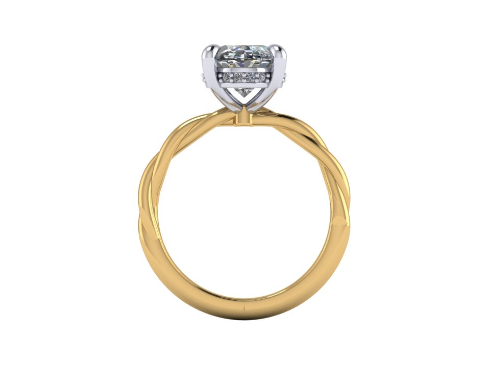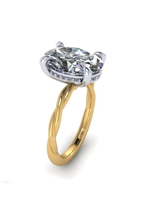 A classic oval center diamond set on a sculptural twisted band, blending elegance with subtle movement.